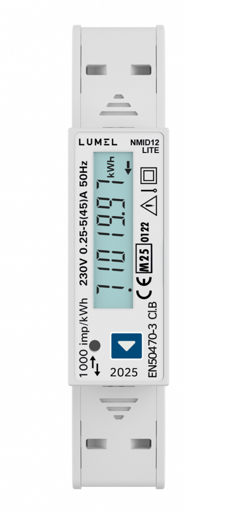 NMID12LITE is a modern, single-phase electricity energy meter for direct measurement, designed for use in residential buildings, commercial facilities, and light industry. The device enables precise measurement and monitoring of electrical parameters in single-phase networks.