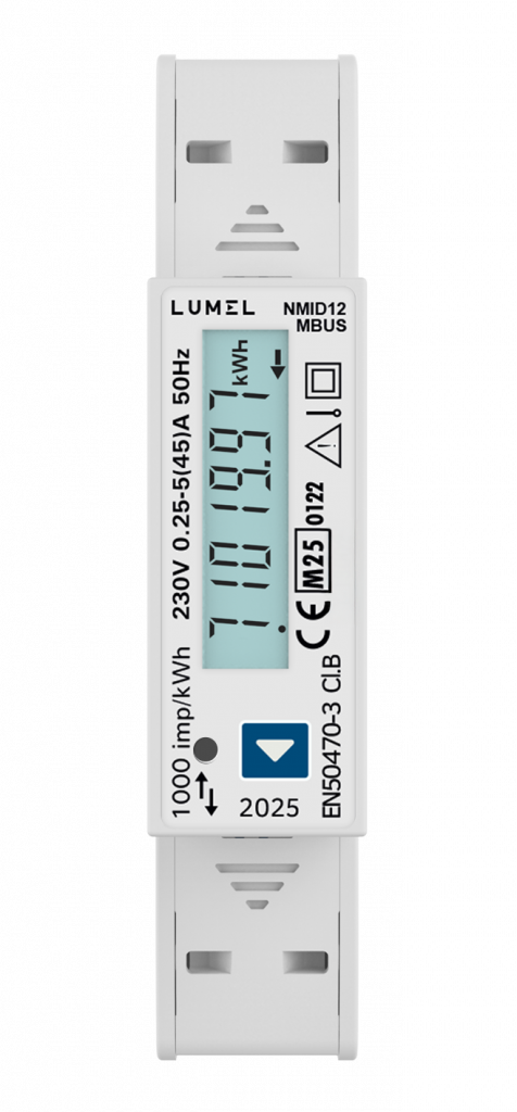 NMID12MBUS is a modern, single-phase electricity energy meter for direct measurement, designed for use in residential buildings, commercial facilities, and light industry. The device enables precise measurement and monitoring of electrical parameters in single-phase networks.