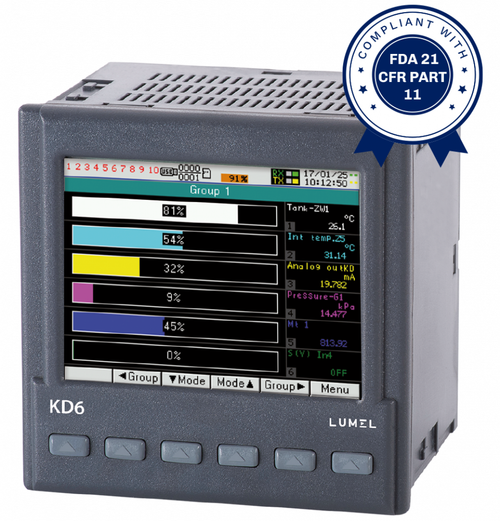- Archiving and visualisation of measuring data transmitted to KD6 from external devices via RS-485 MODBUS .