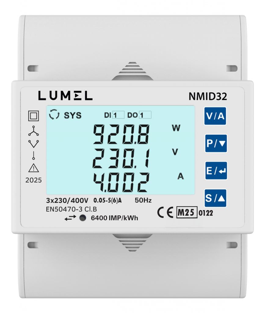 NMID32 to trójfazowy licznik energii elektrycznej przeznaczony do pomiaru parametrów w sieciach 3-fazowych 4-przewodowych, 3-fazowych 3-przewodowych oraz 1-fazowych. Urządzenie zostało zaprojektowane do zastosowań w instalacjach mieszkaniowych, komercyjnych oraz w przemyśle lekkim.