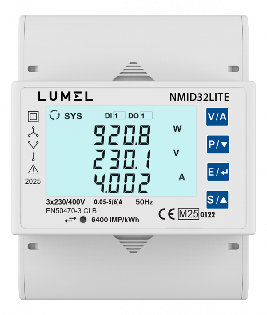 NMID32LITE to trójfazowy licznik energii elektrycznej przeznaczony do pomiaru parametrów w sieciach 3-fazowych 4-przewodowych, 3-fazowych 3-przewodowych oraz 1-fazowych. Urządzenie zostało zaprojektowane do zastosowań w instalacjach mieszkaniowych, komercyjnych oraz w przemyśle lekkim.